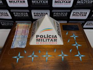 No local, foram apreendidos pinos de cocaína, dinheiro e um aparelho celular.
