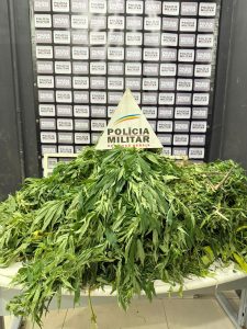 Itabira, 02/02, por volta das 17h43min, durante verificação de denúncias anônimas relacionadas a possíveis atividades ilícitas no Bairro Gabiroba, militares compareceram a residência denunciada, sendo localizado no quintal do imóvel diversos pés de maconha, alguns ainda cultivados no solo e outros já em processo de secagem.
