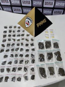 A Polícia Militar compareceu a uma residência após receber denúncias de que um indivíduo estaria comercializando e armazenando entorpecentes no local.
