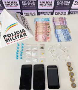Em continuidade durante buscas autorizadas na residência, foram localizadas diversas substâncias prontas para comercialização e dinheiro trocado, característico da atividade ilícita.