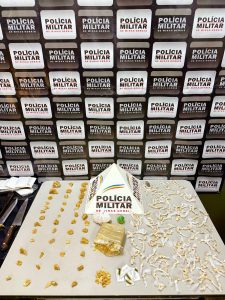 No local, os militares encontraram meia barra de substância análoga ao crack, 490 pedras da mesma droga, uma porção grande da substância em variados tamanhos, uma bucha de maconha, caixas de lâminas de barbear, facas usadas no preparo, sacolas plásticas tipo “chup-chup” e seis aparelhos celulares de diferentes marcas e modelos.